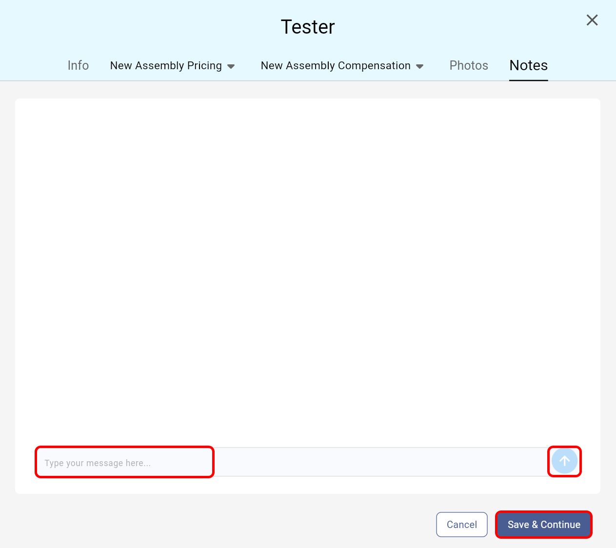 Add notes to the product by typing them in the field at the bottom of the window then press the Arrow button to add them. When complete, click the Save & Continue button.